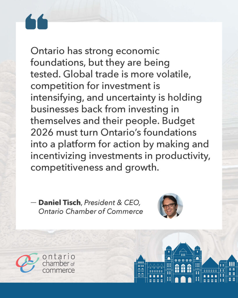 Amidst growing uncertainty and disruption, the Ontario Chamber of Commerce’s 2026 Ontario Budget Submission calls on the provincial government to take definitive steps to: